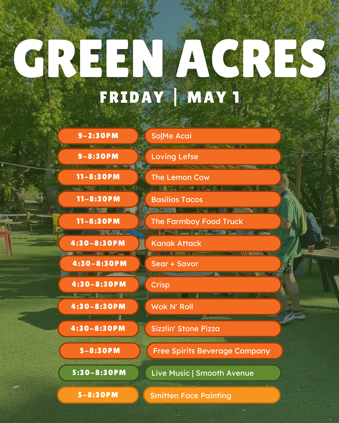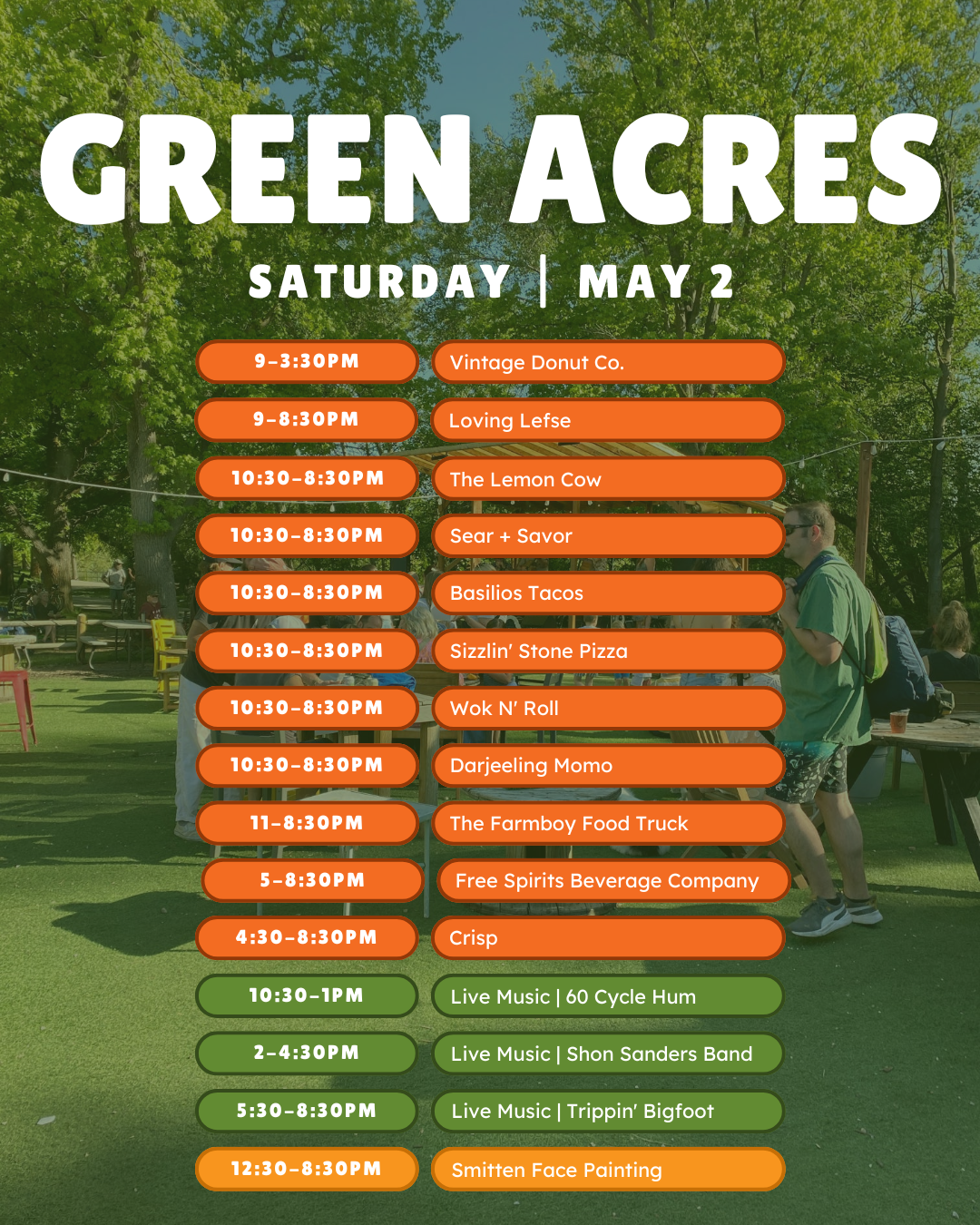 Planning your next visit? You’re in the right place. Our park schedule is typically posted 3 to 6 weeks in advance so you can look ahead and make it a whole thing. From live music and special events to pop-up vendors and your favorite food trucks, there’s always something new mixed in with the regular lineup. Check back often since things can shift a bit as we add more fun to the calendar.